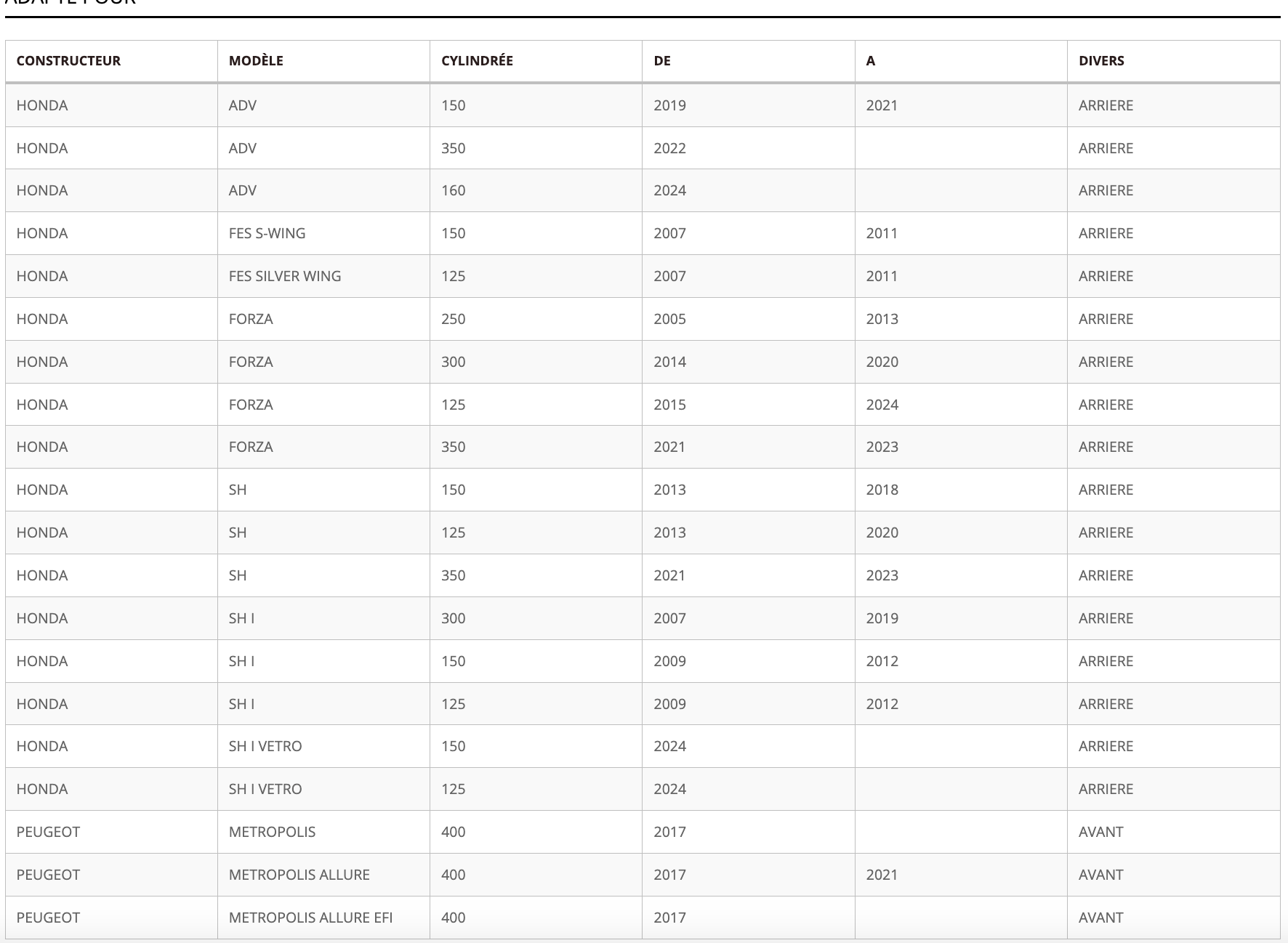 125 FORZA 2015> AR, 350 ADV 2022> AR, 125 SH I 2009>2012 AR, 300 SH I 2007>2019 AR, 350 FORZA 2021>2023 AR